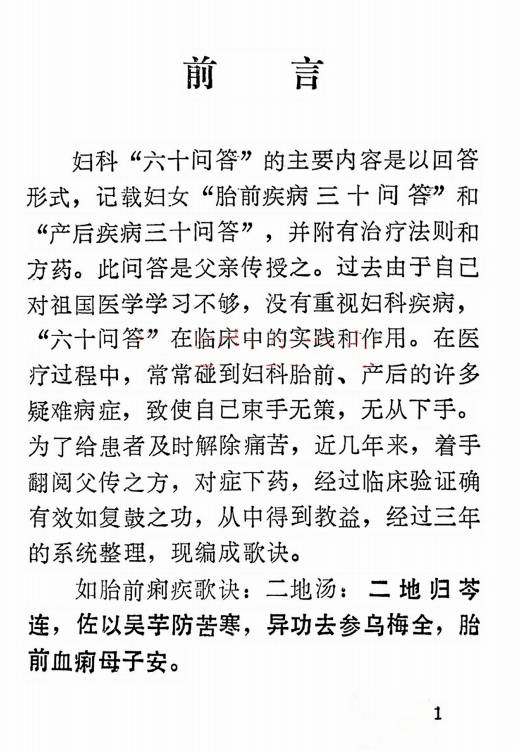 妇科“六十问答”的主要内容是以回答形式,记载妇女“胎前疾病三十问答”和“产后疾病三十问答”,并附有治疗法则和方药。