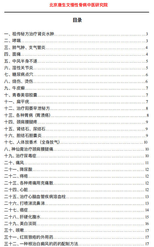 北京唐⽣⽂慢性⻣病中医研究院内部资料