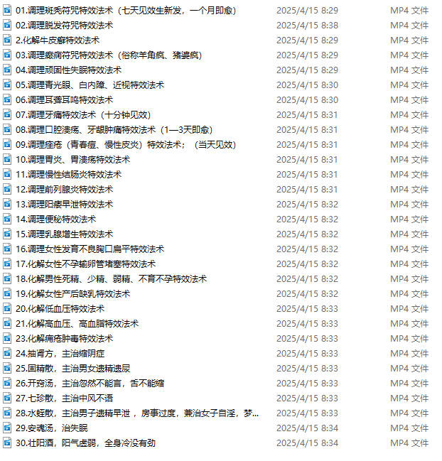 内含符法+药方视频,以药治病,以符咒加持药物,以祝由术为根基,引出课题。本课题包含道家正一药公全教符法药法、天医祝由符咒法、少数民族祝由法、道家药膳、道家丹方。