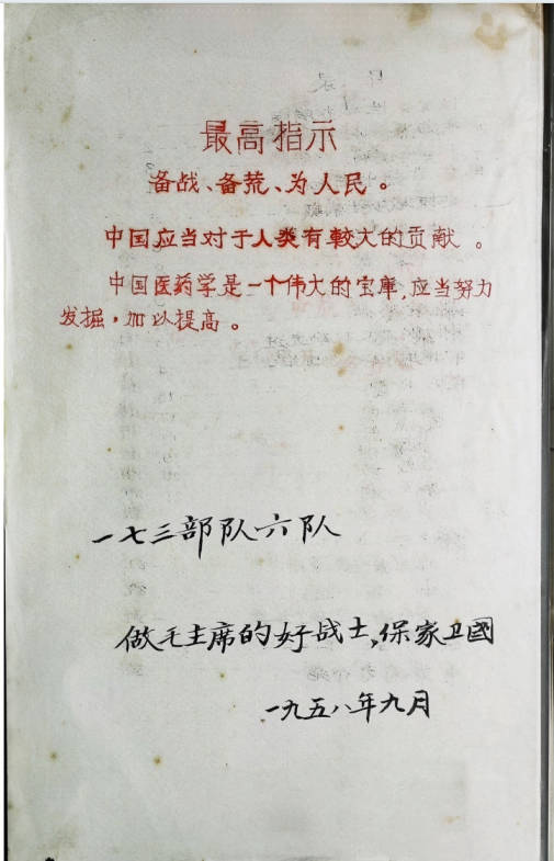 1958年一七三部队六队编印的验方汇集