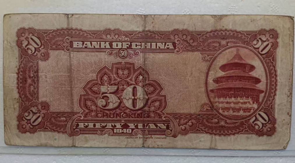 【保真】中国银行民国29年1940年50圆五十圆重庆 美钞公司大票幅原票